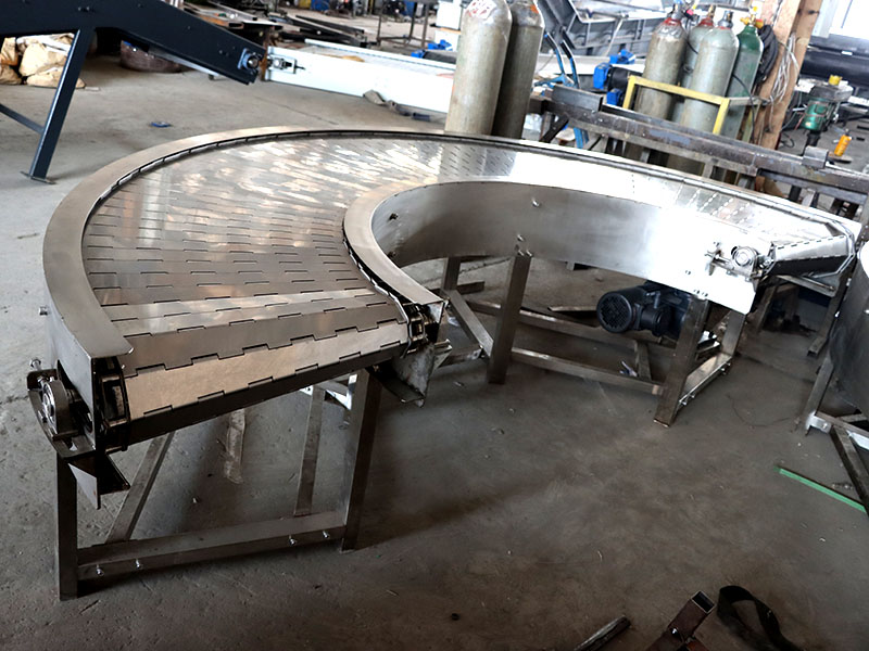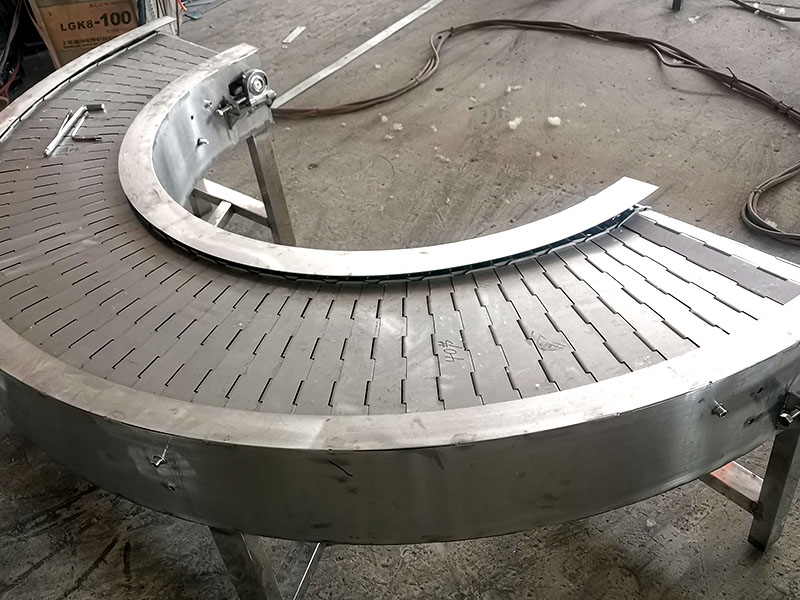 1、鏈板輸送機的輸送面平坦光滑、摩擦力小,物料在輸送線之間的過渡平穩,可輸送各類玻璃瓶、PET瓶、易拉...